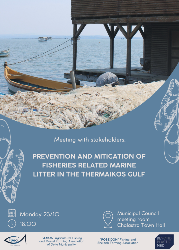 Towards the active involvement of the local stakeholders, the recycling of more quantities of plastic mussel farming nets and the investigation of opportunities for reusing fishing equipment, we organise a meeting with the local stakeholders on the “Prevention and mitigation of fisheries related marine litter in the Thermaikos Gulf”.